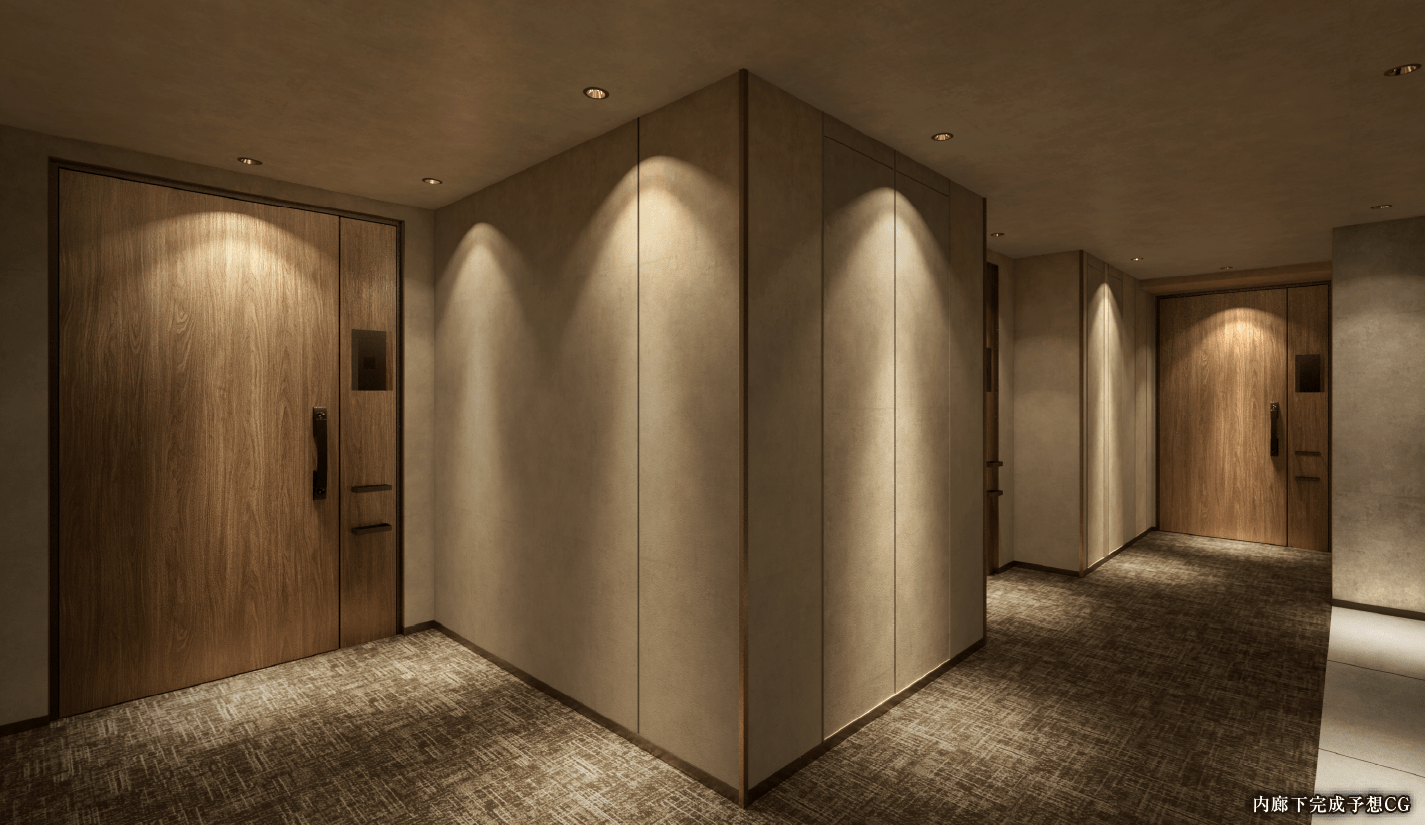 ※掲載の内廊下完成予想CGは計画段階の図面を基に描き起こしたもので、形状・色等は実際とは異なります。なお、形状の細部、設備機器等は表現しておりません。