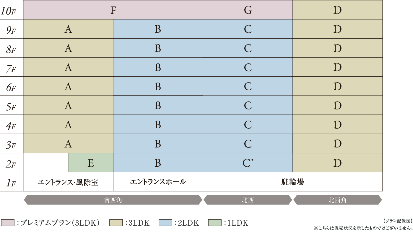 快適な都市居住のための3LDKと2LDKを中心※とする住戸ラインアップを実現。最上階10階にはさらなるゆとりを叶えたプレミアムプランをご用意しました。