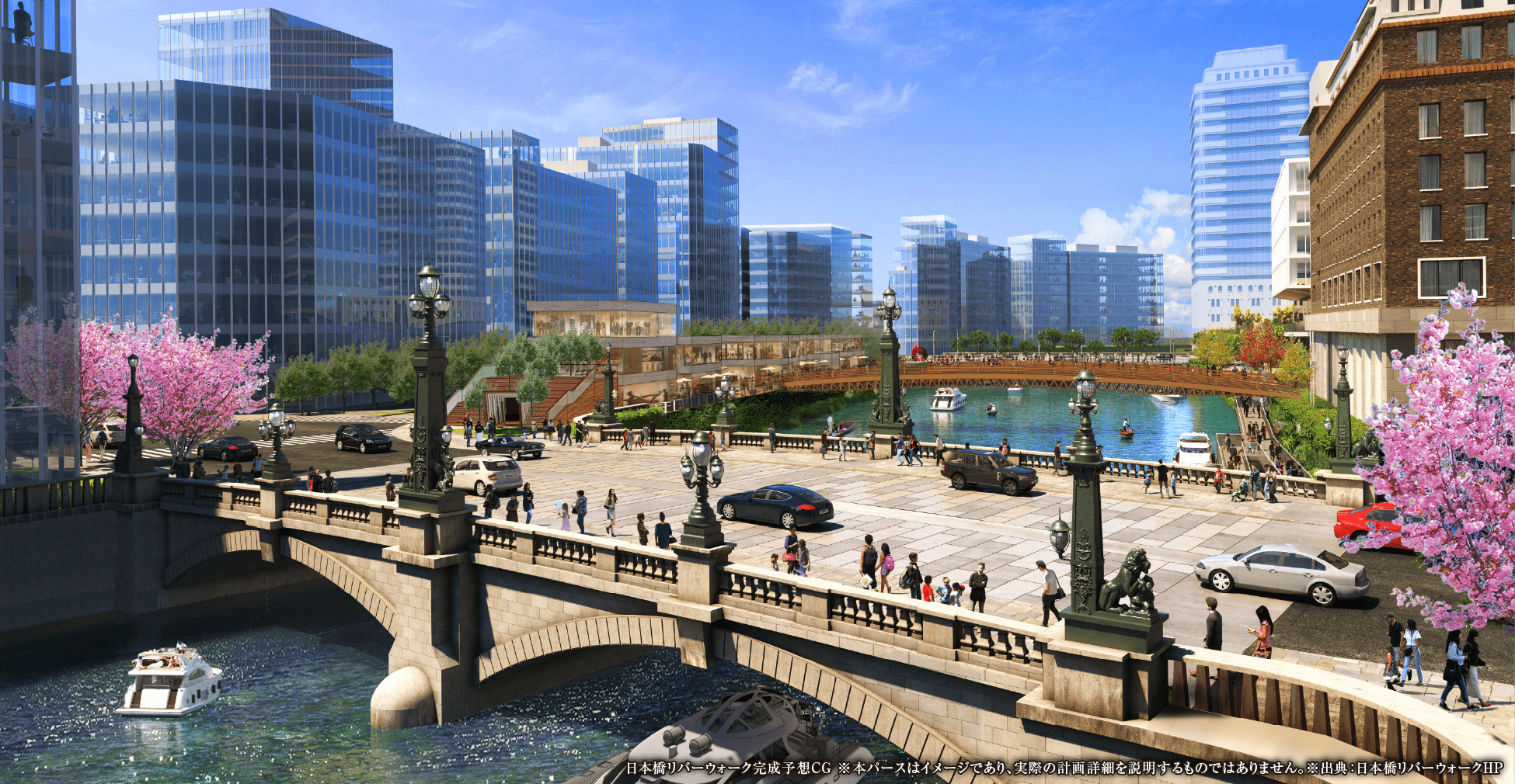 そこでは、空を取り戻した日本橋と広大な親水空間、多彩な都市機能がひとつとなって、
