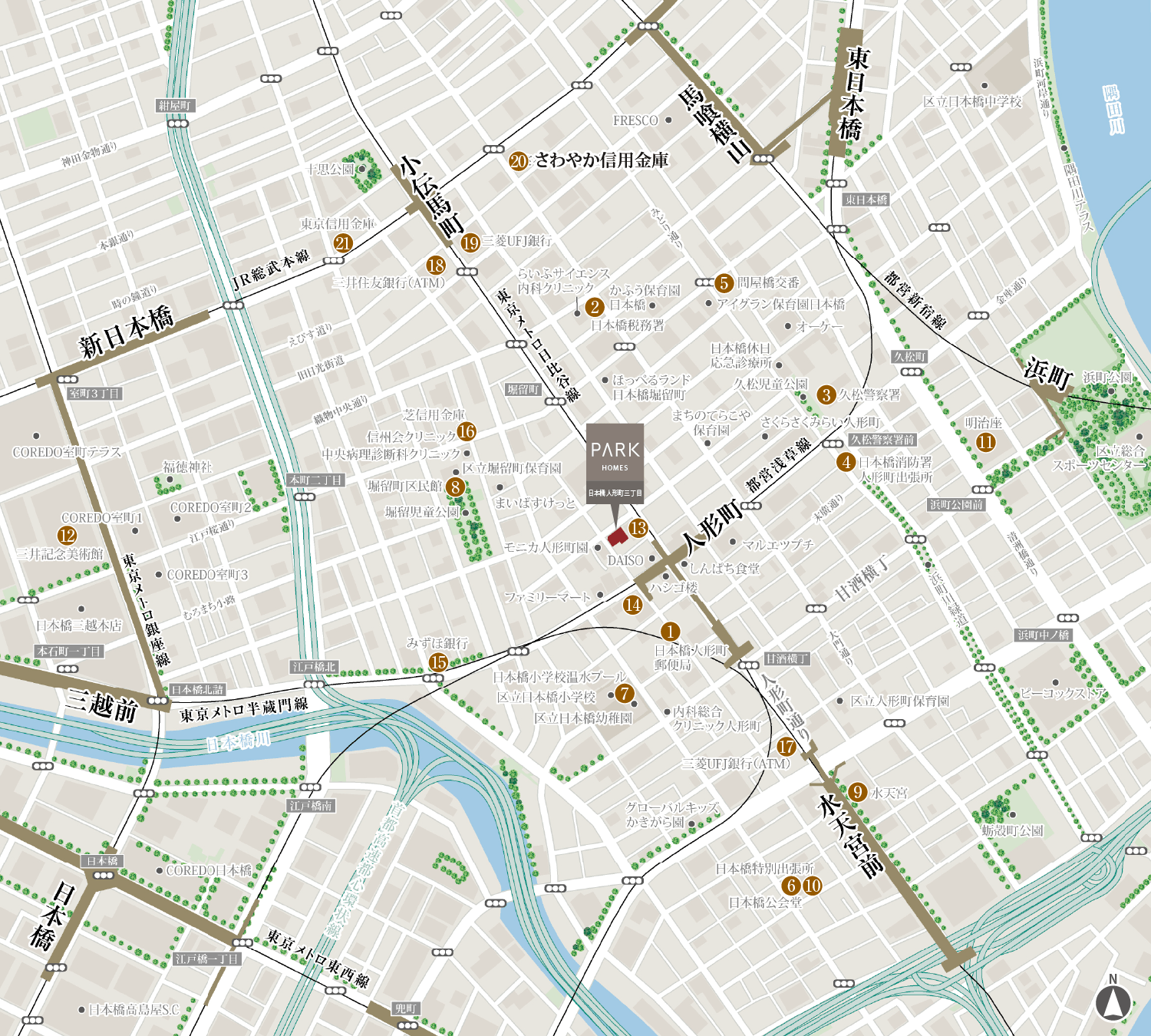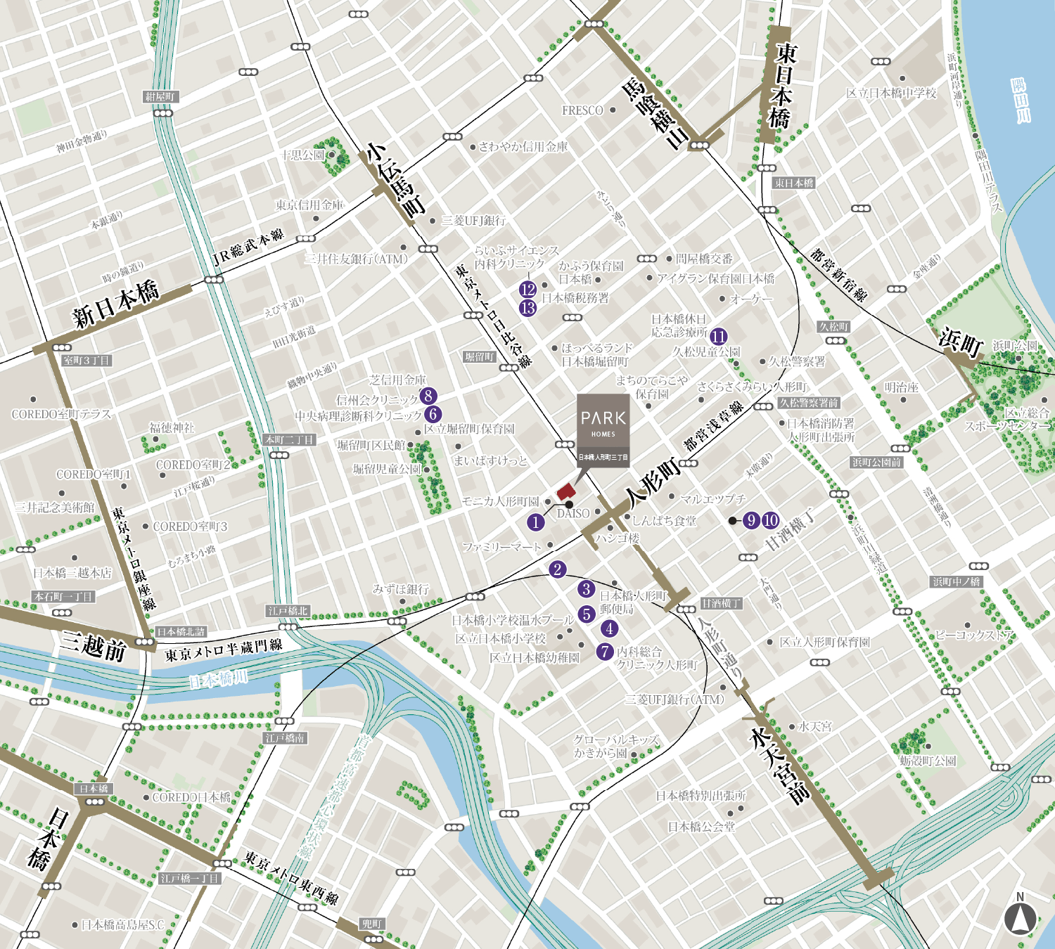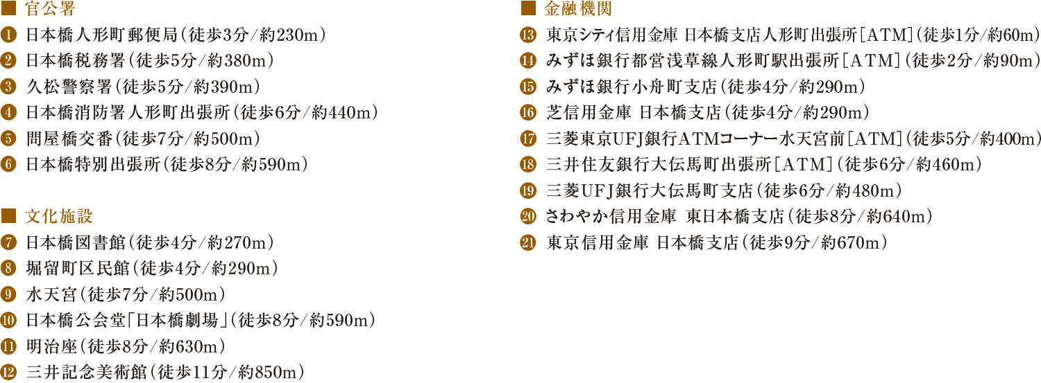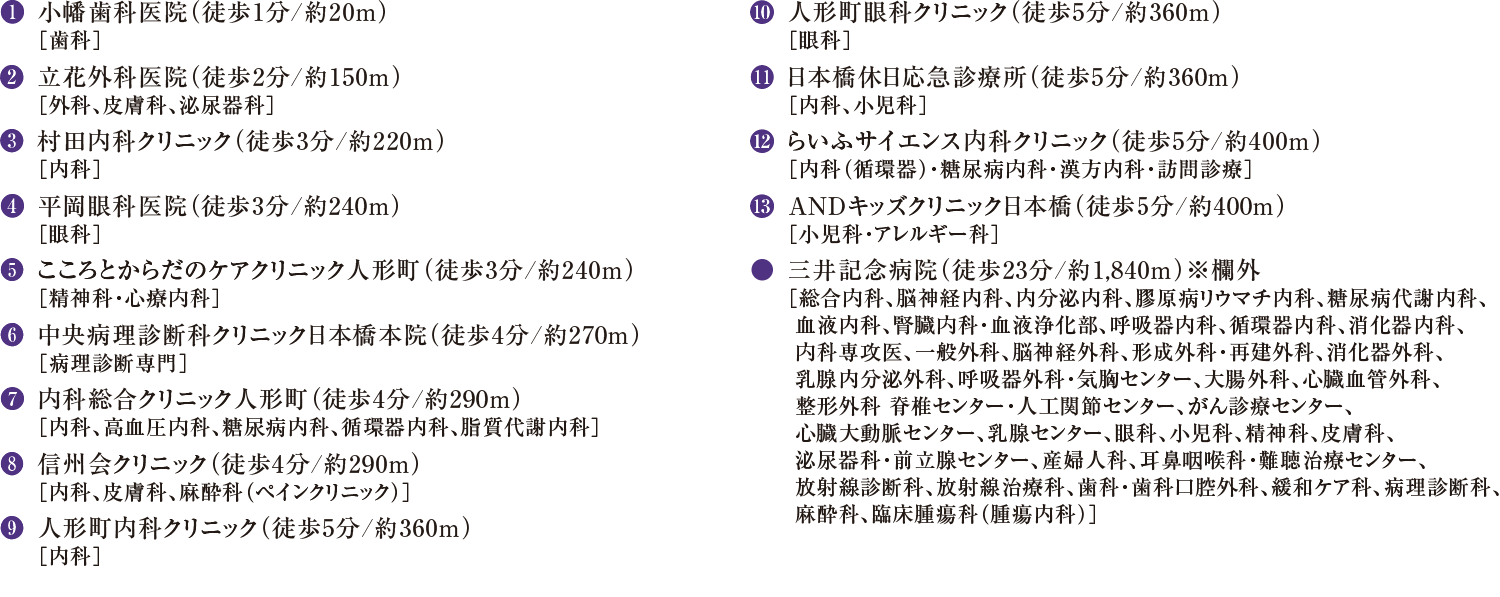 さらに徒歩圏に多種多彩な医療施設が揃うほか、「日本橋休日応急診療所」も徒歩5分の近さです。