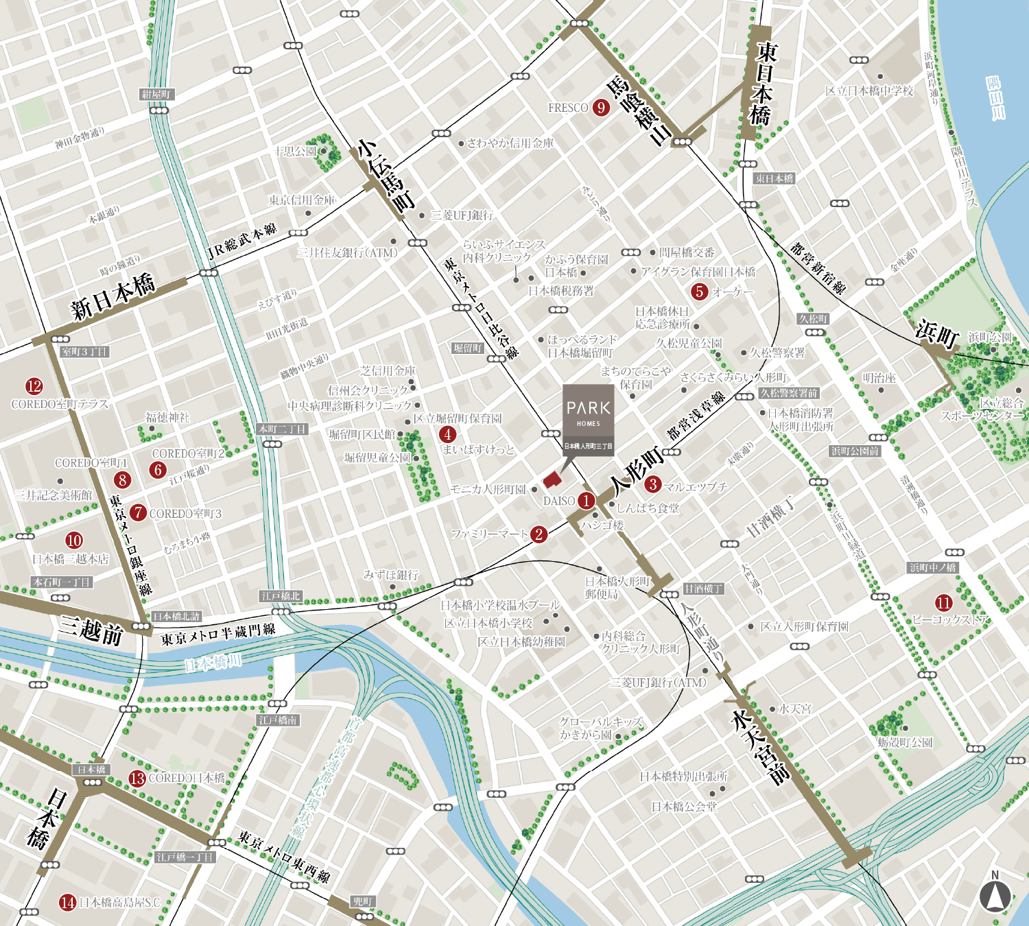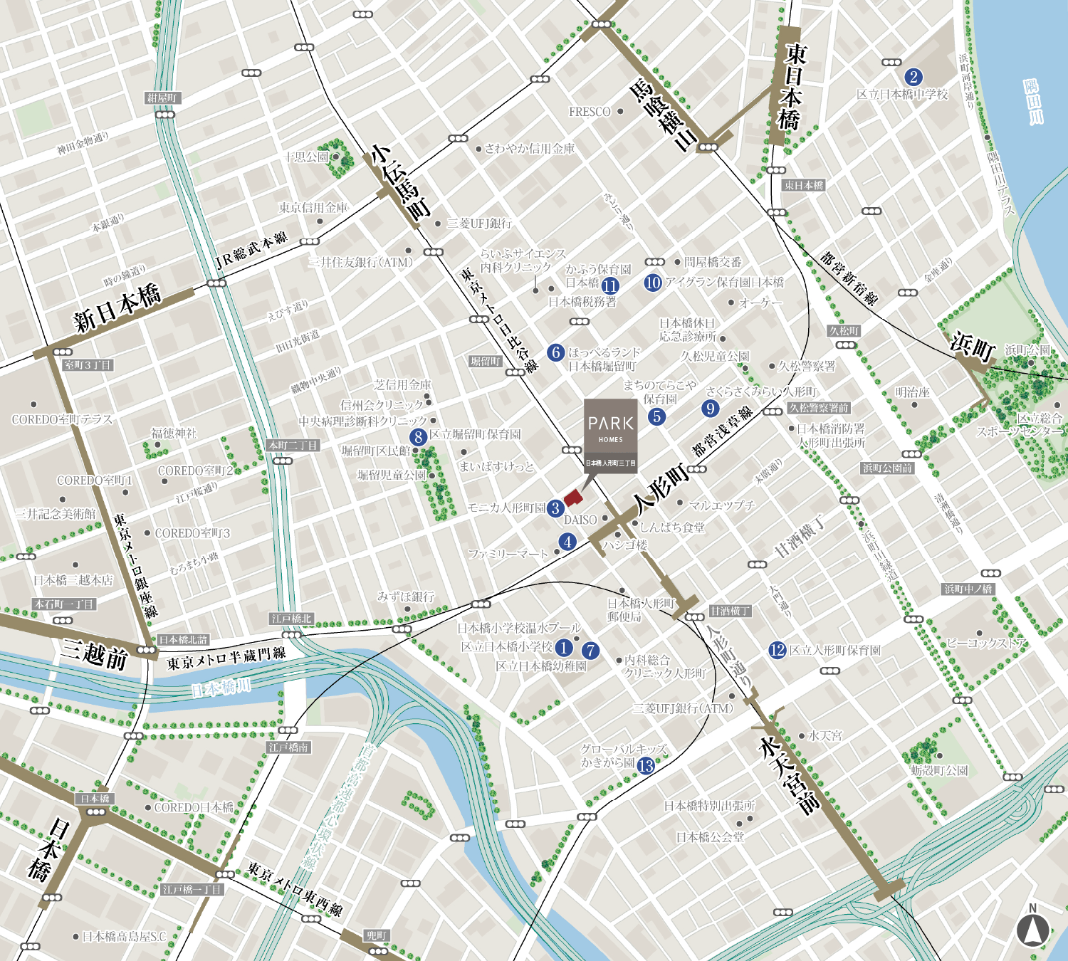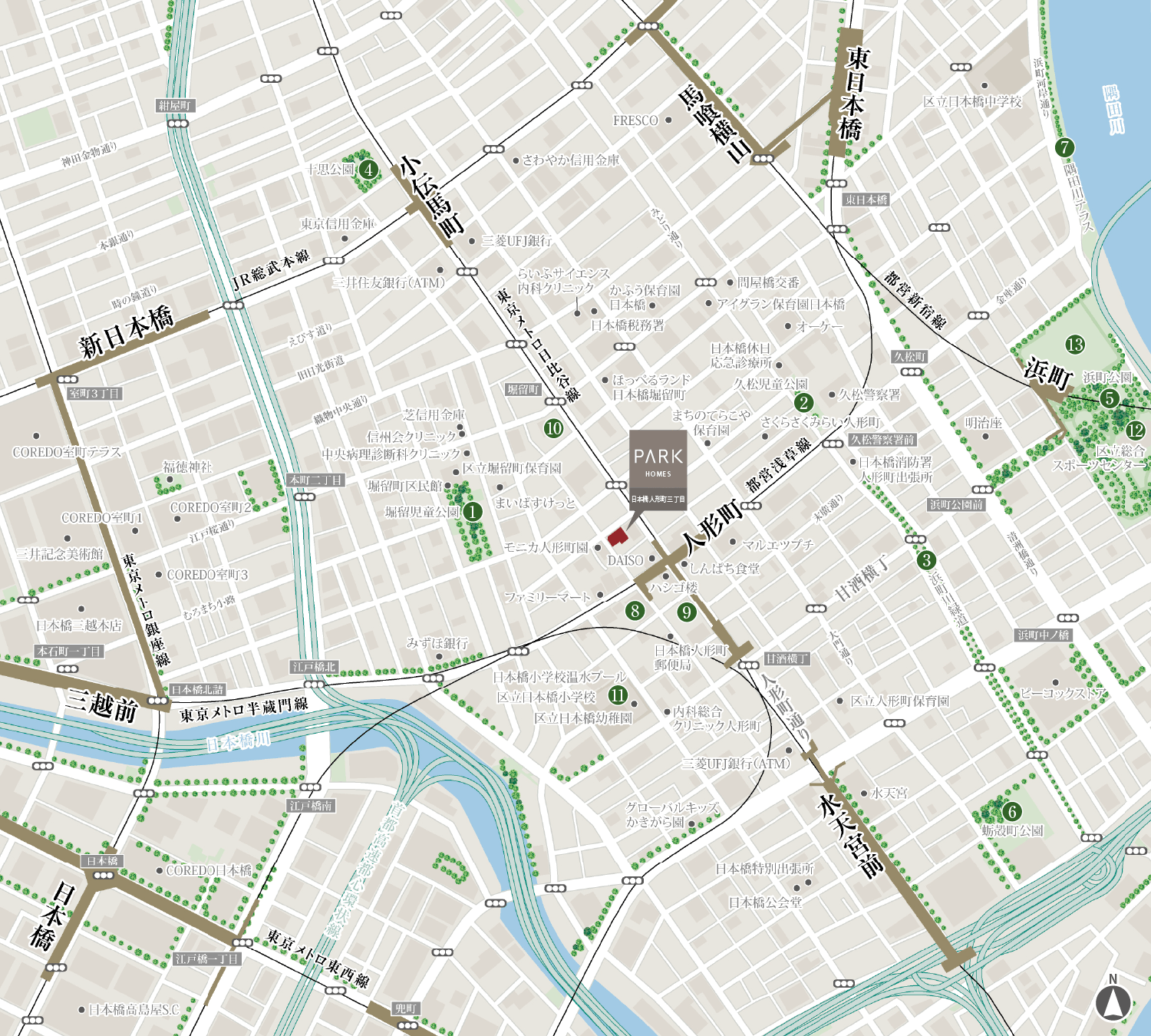 さらに徒歩圏に多種多彩な医療施設が揃うほか、「日本橋休日応急診療所」も徒歩5分の近さです。