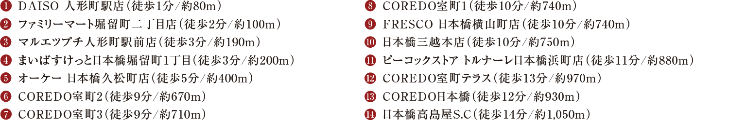※COREDO室町1(徒歩10分/約740m)、COREDO室町3(徒歩9分/約710m)、COREDO室町テラス(徒歩13分/約970m)