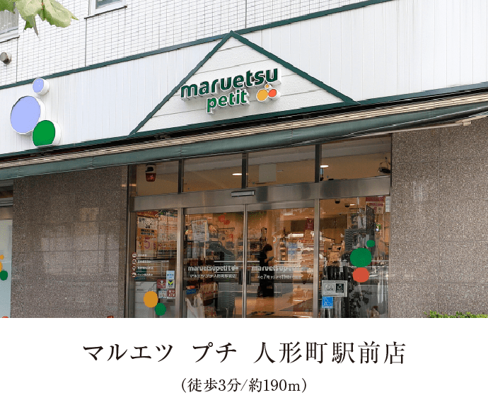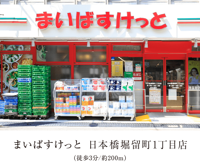 日本橋人形町の活気の中心である「甘酒横丁」(徒歩4分/約300m)と「人形町商店街」(徒歩1分/約50m)。明治時代に甘酒屋があったことにちなむ「甘酒横丁」は、並木道に沿って50以上の老舗飲食店や食料品店、伝統工芸店が軒を連ね、情緒を醸し出しています。また、「人形商店街」は街のメインストリートの人形町通りに180以上のお店が連なる商店街。食に関わる店が多く、美食の街を強く印象づけます。