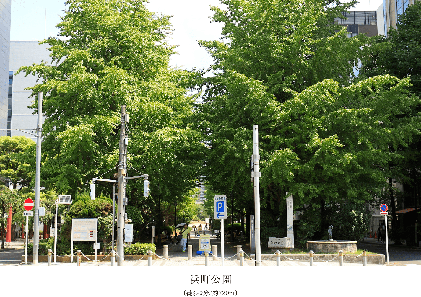 中央区立公園中最大の面積を誇る徒歩9分の「浜町公園」。
