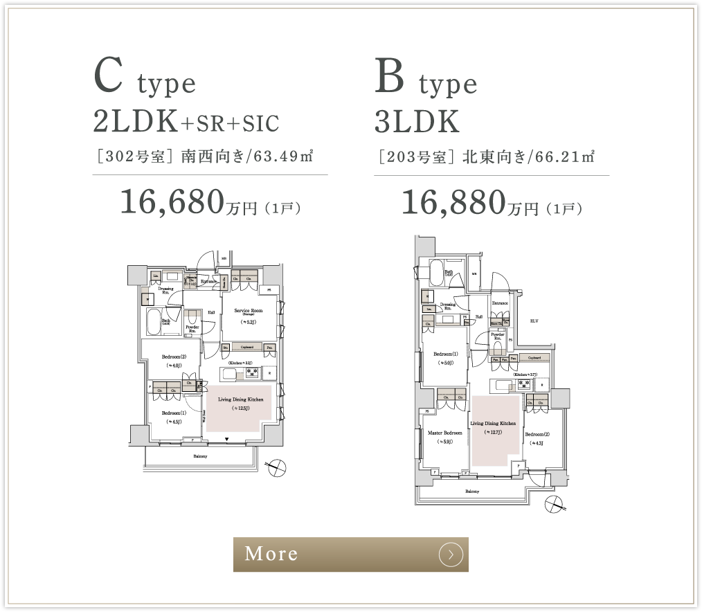 - 1億6680万円(1戸)・1億6880万円(1戸)