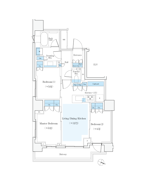 内廊下設計・全邸角住戸・1フロア最大4邸がもたらす、静けさとプライバシー性に包まれた日常。