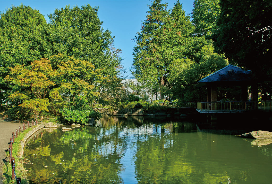 「桃園川緑道」は、花と緑が続くプロムナード。季節ごとに異なる表情を見せながら、街並みにやさしい風景を描き出します。