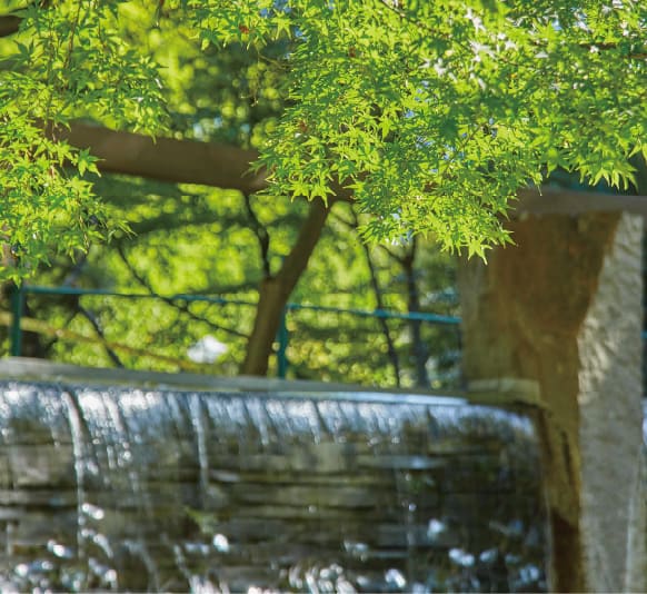 徒歩3分にある、大滝と芝生の丘のある公園。潤い溢れる自然の風景の中で、深呼吸したくなるような開放感を味わえます。