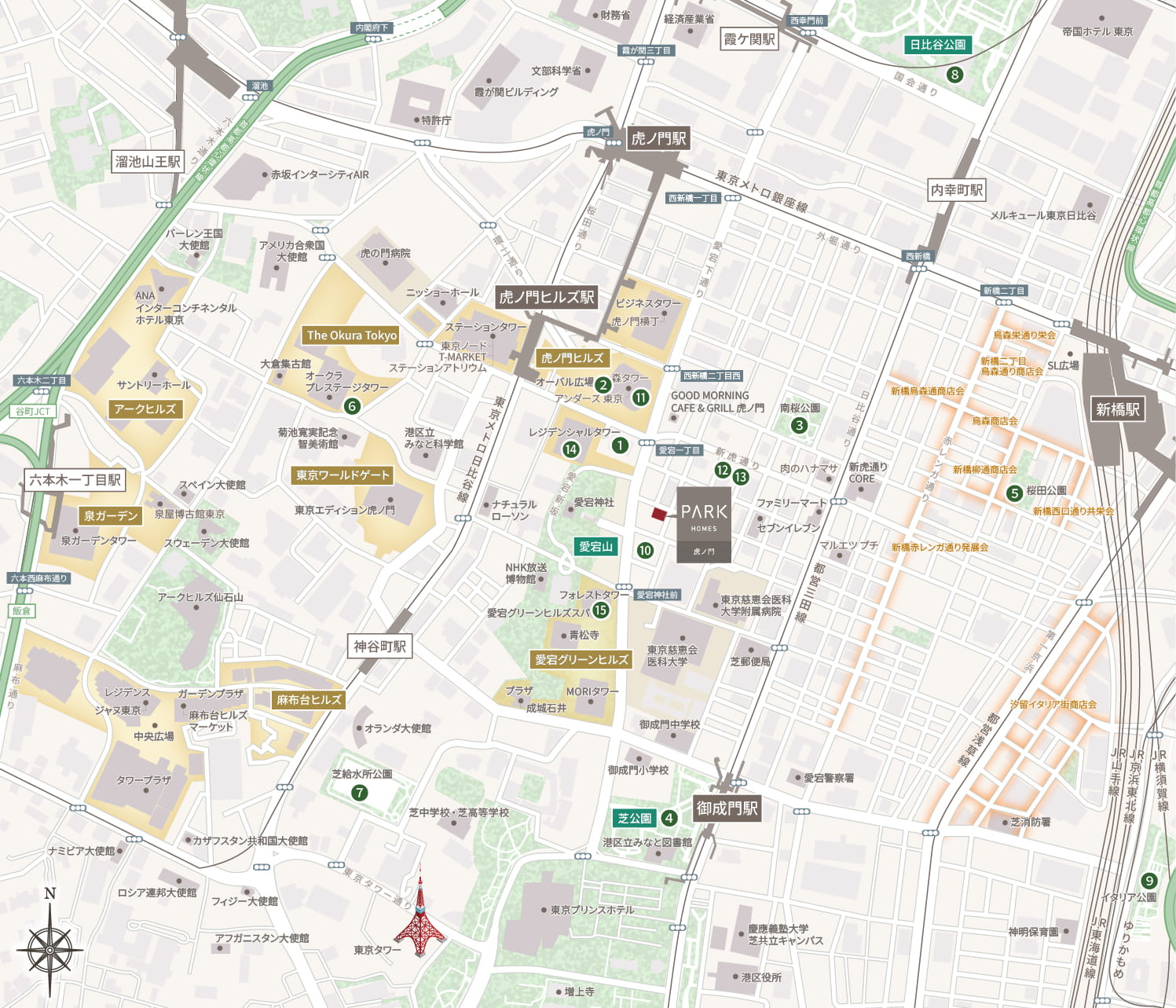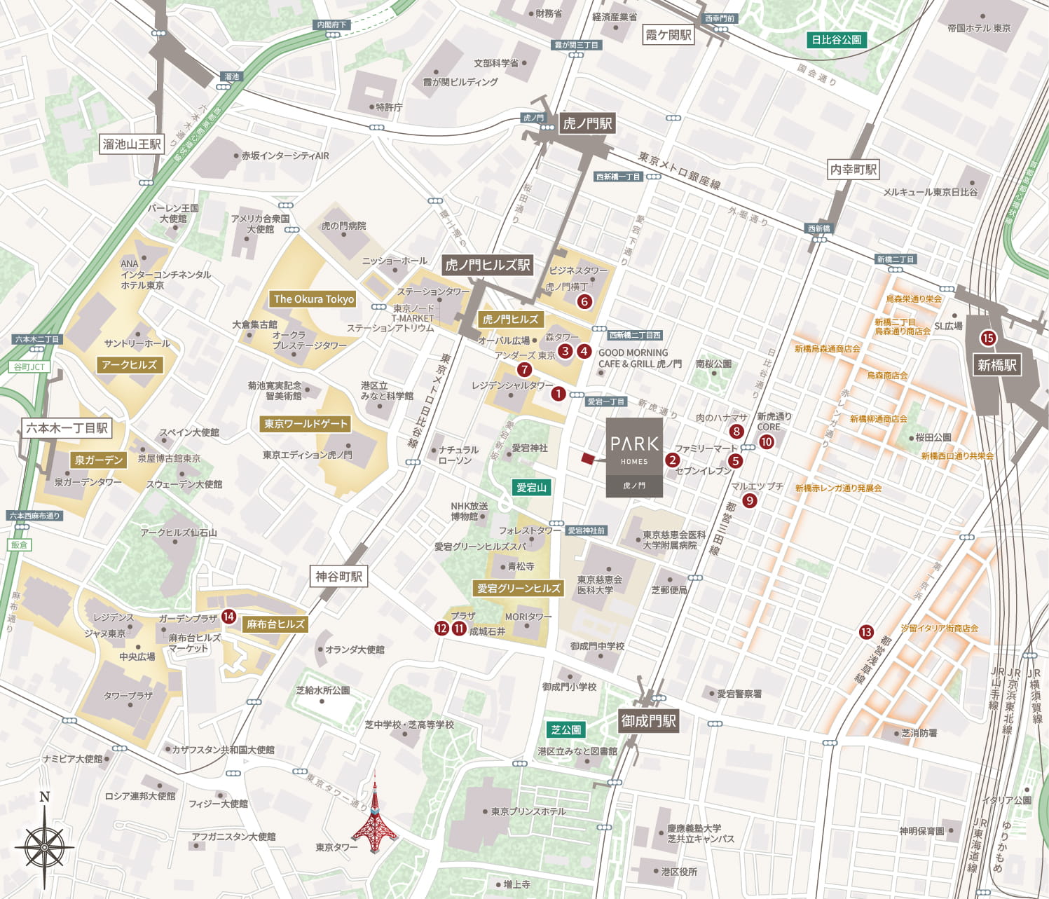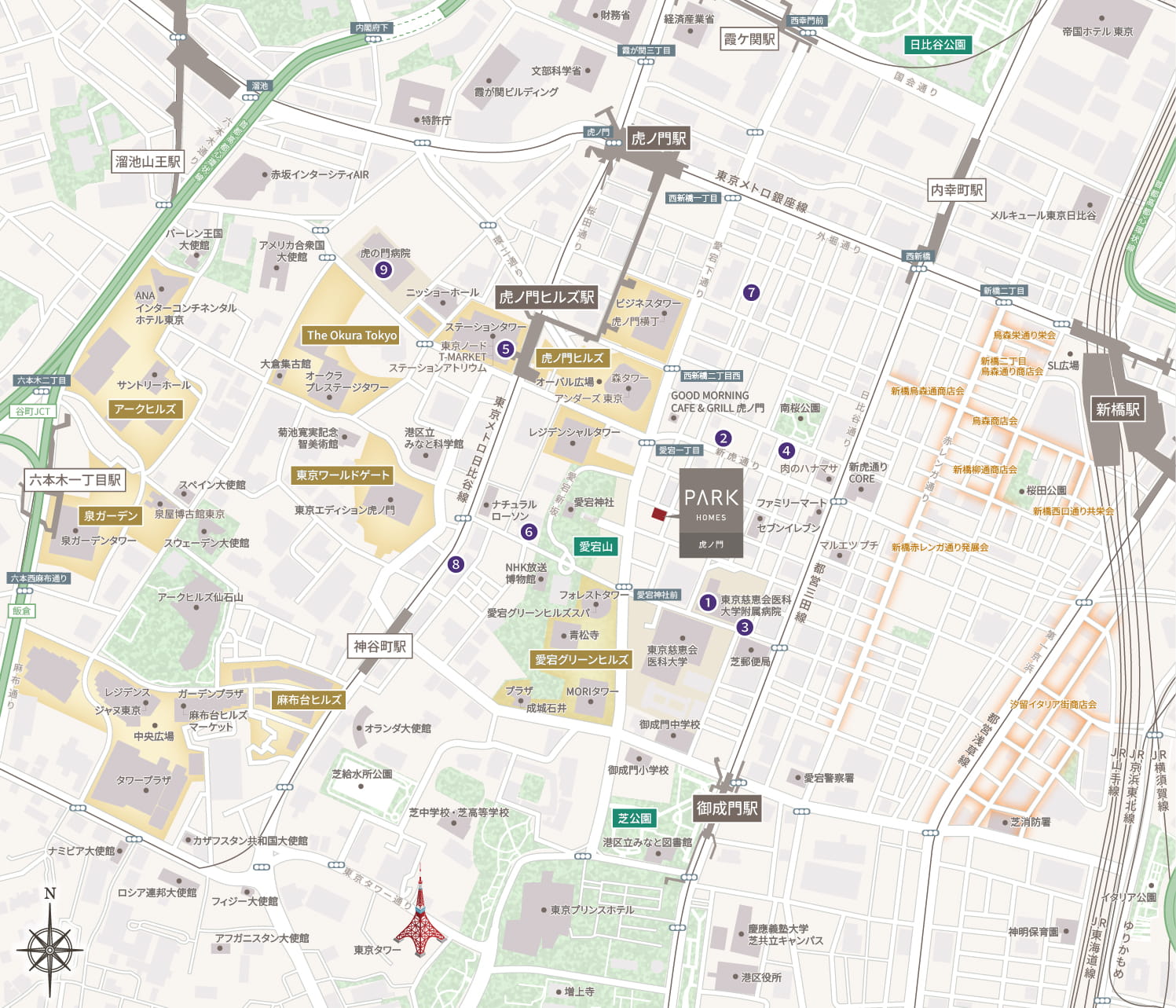 ※1.虎ノ門ヒルズ 森タワーまでの距離を計測