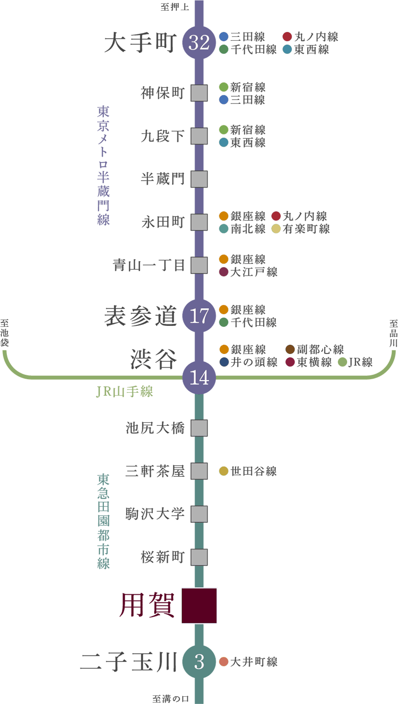 「渋谷」駅直通14分、都心直結の東急田園都市線は半蔵門線に乗り入れ、