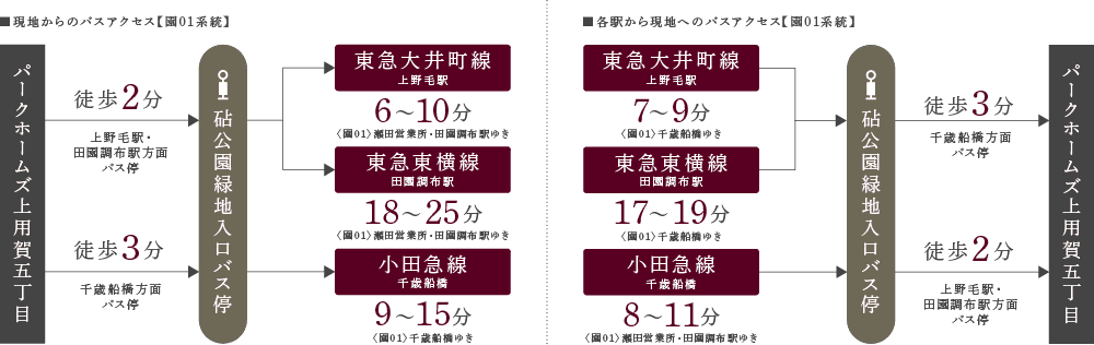 ※バスの所要時間は道路状況により異なります。※出典:東急バス公式HP