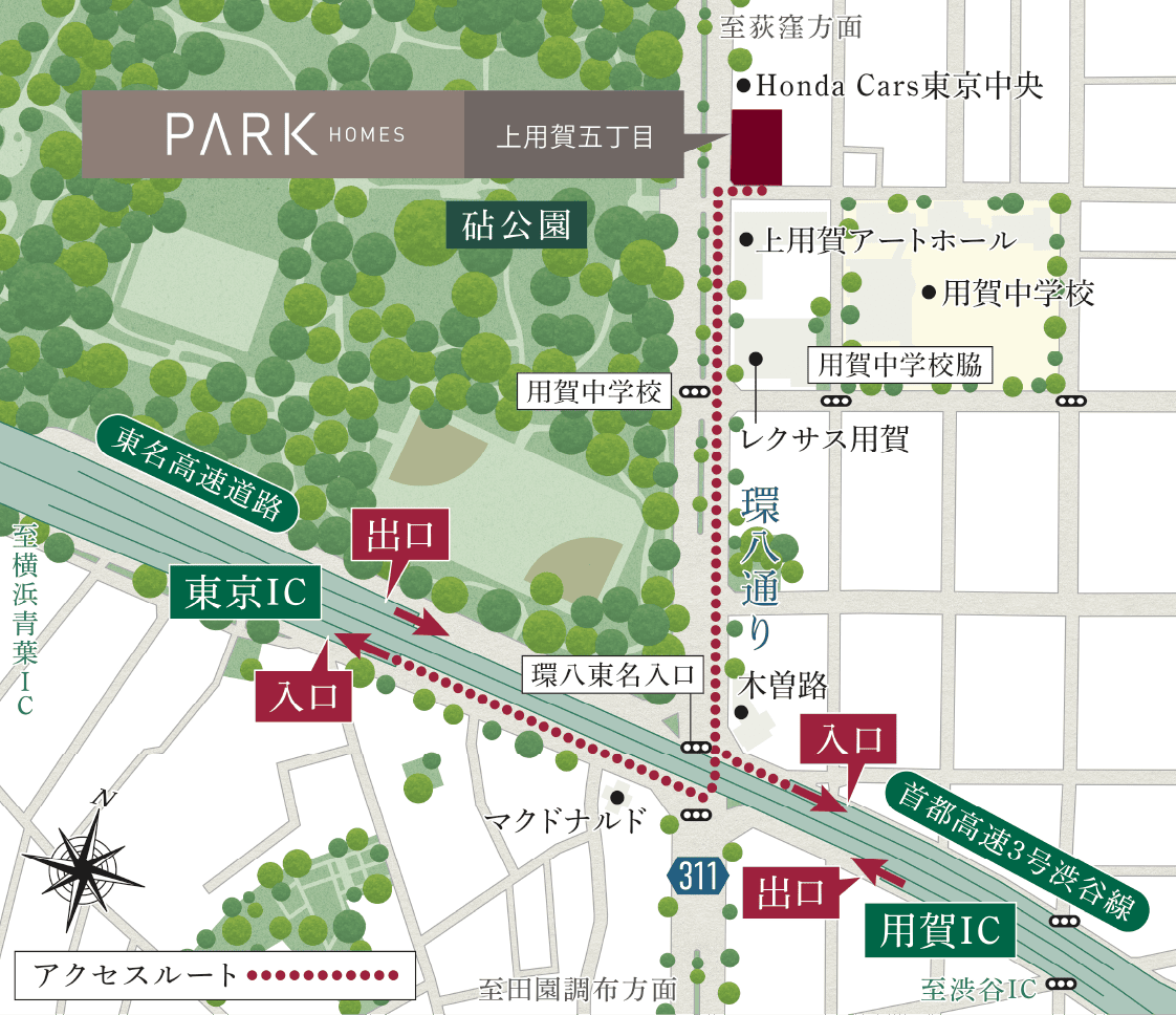 東京ICへ約600m、用賀ICへ約450m、第三京浜玉川ICもすぐで