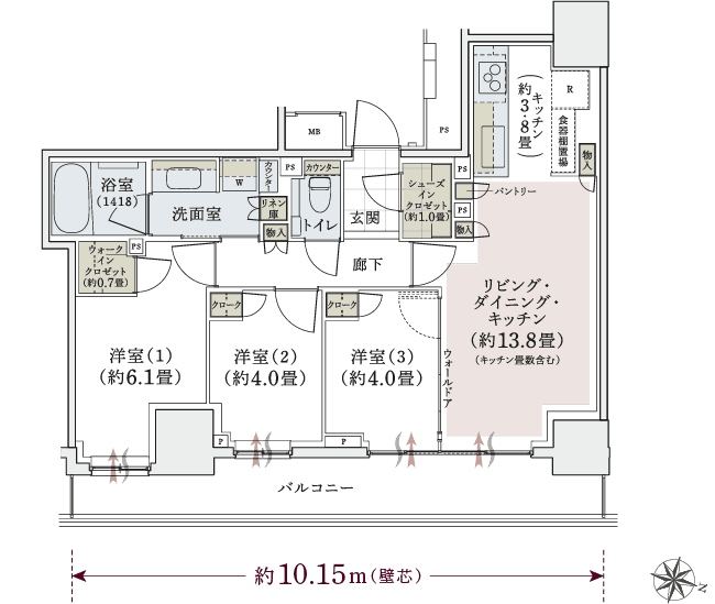 ※掲載の図面は設計段階の図面を基に描いたもので実際とは多少異なる場合があります。また施工上の理由及び改良のため変更する場合がございます。※住戸により仕様・形状が異なる場合もございます。※代表タイプの間取りを表示しております。販売住戸の間取りについては本広告時の物件概要の[販売住戸の一覧]をご覧ください。