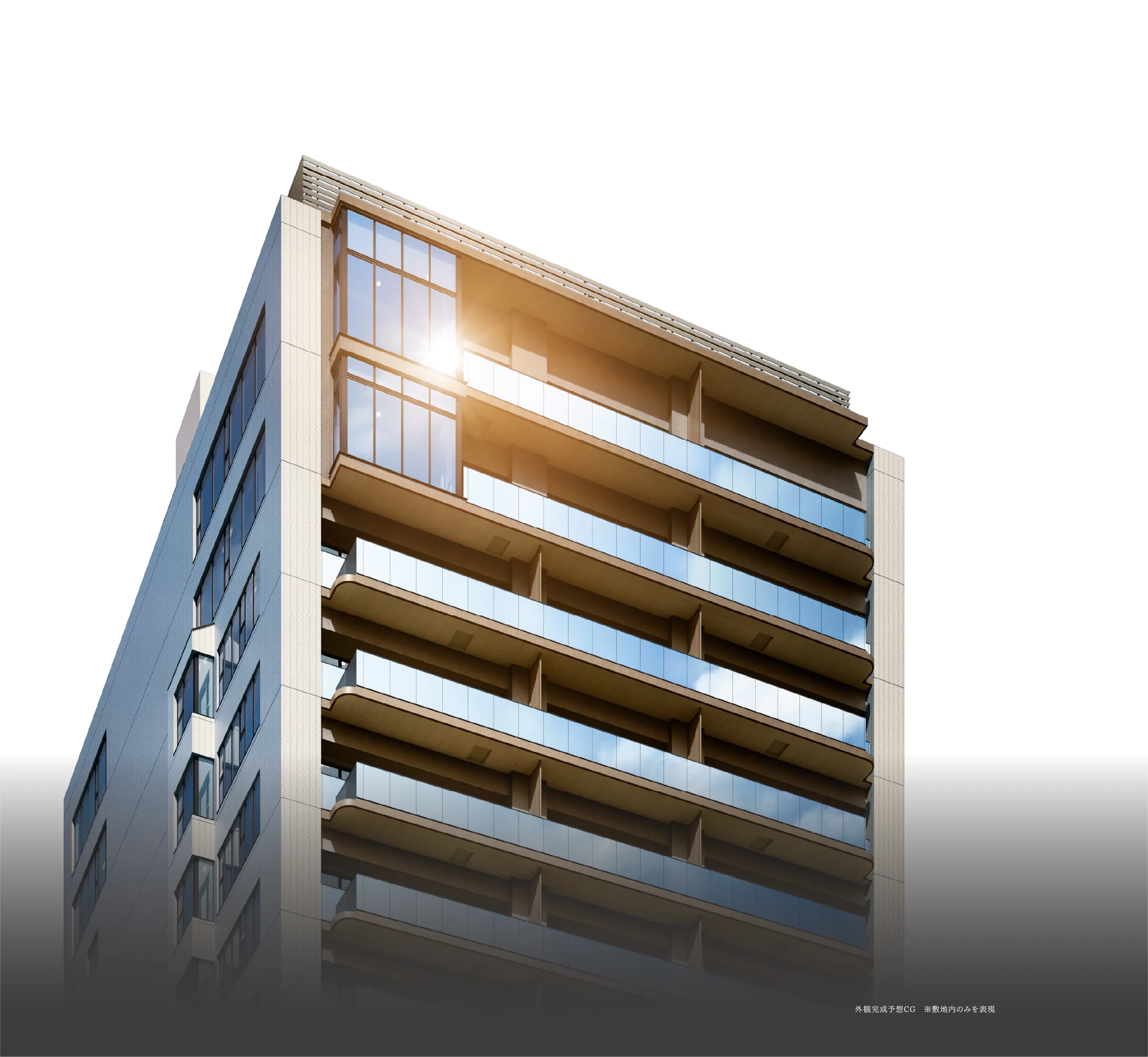 番町の邸宅が受け継いできた美意識を礎に、麹町の洗練された街並みに調和する意匠を追求。温かみあるアースカラーのタイルが、街並みにやわらかく響き合いながら、気品ある佇まいを静かに主張する。軒裏や隔板には木調塗装を、パークフロントエントランスには焼き物のテラコッタを用い、視線の先に温もりを添えた。駅からの動線を自然に導く緩やかな曲線の構えが、住まう歓びへの高揚をもたらす。モダンでありながら、品格と上質が宿るファサードをデザインした。