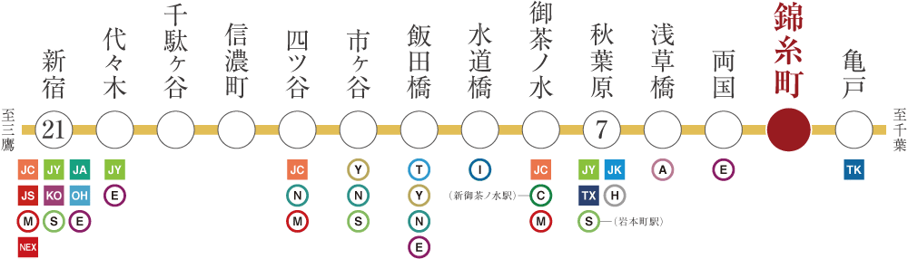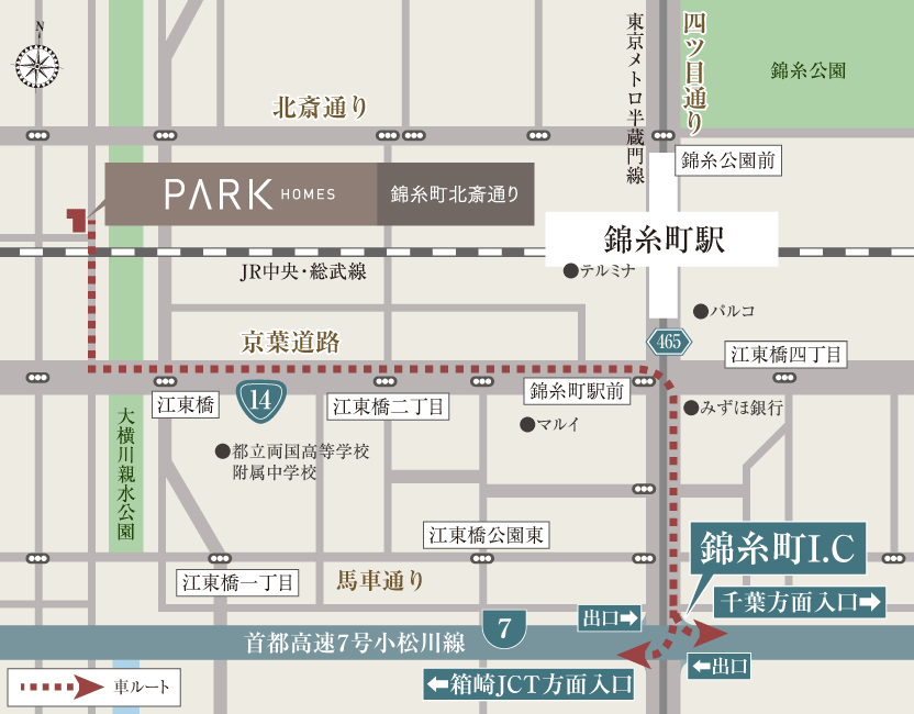 徒歩9分の東京メトロ半蔵門線「錦糸町」駅より