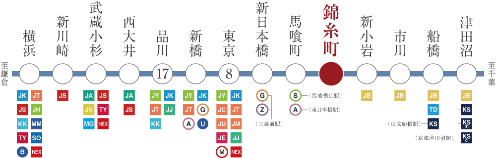 徒歩8分のJR中央・総武線、総武線快速「錦糸町」駅より