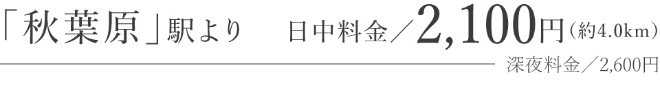 ※タクシー料金はGO株式会社(https://go.goinc.jp/)タクシー料金検索にて算出したもので、走行ルートや交通事情によって所要時間・料金等が異なります。なお、高速料金は含まれておりません。深夜料金は午後10時から午前5時までの適用となります。