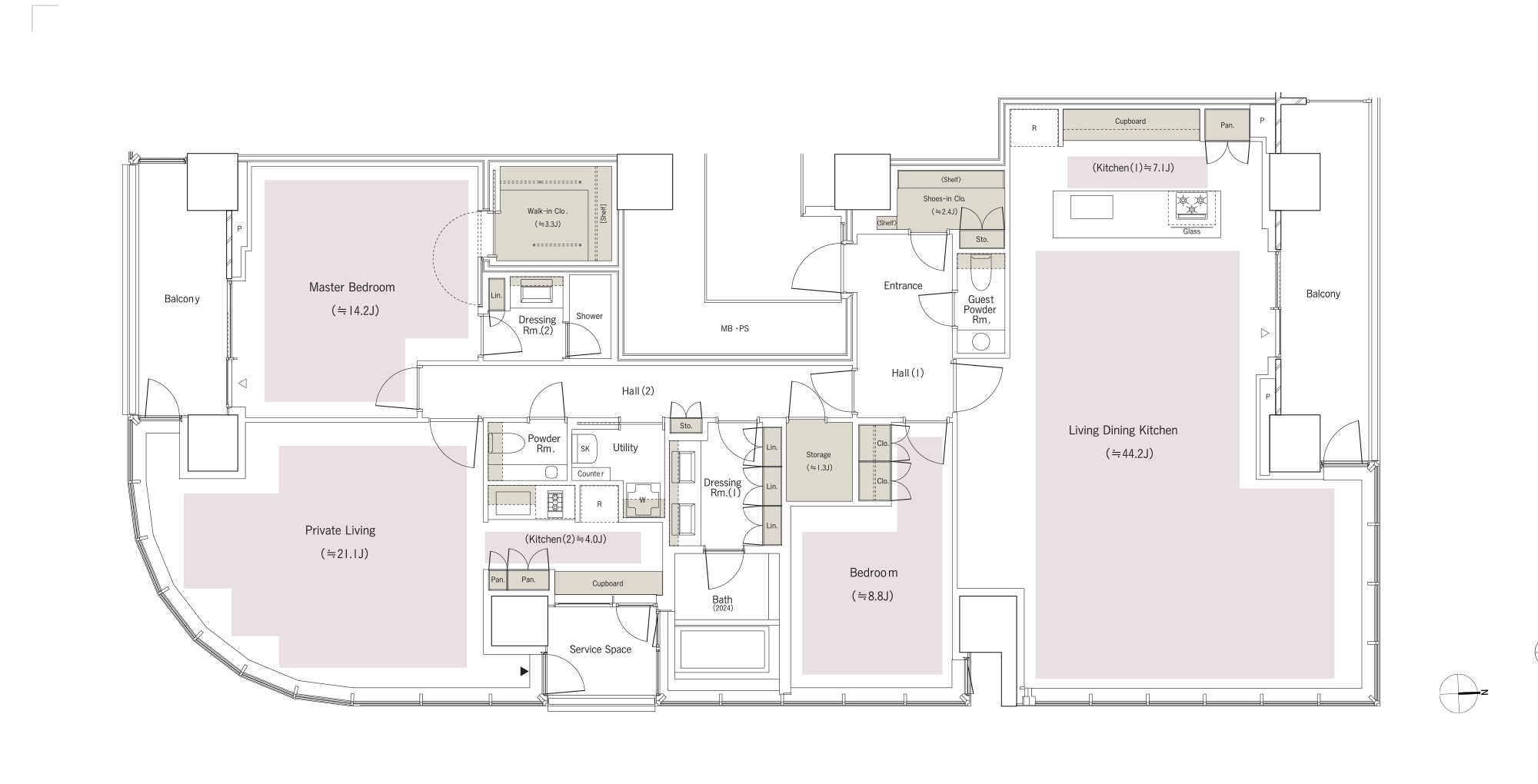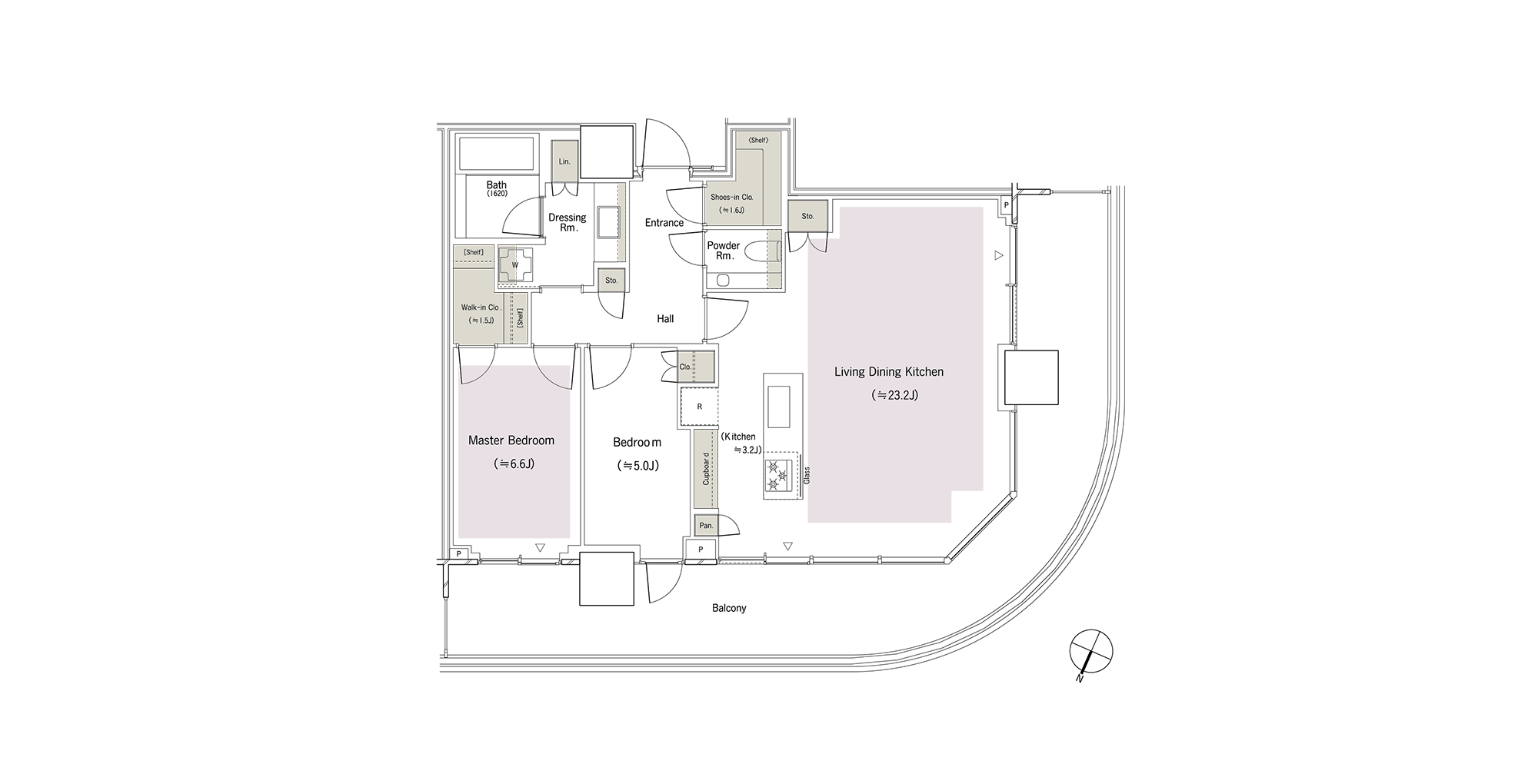 - ※掲載の図面は設計段階の図面を基に描いたもので実際とは異なります。また施工上の理由及び改良等により変更となる場合がございます。※住戸により仕様・形状が異なる場合がございます。
