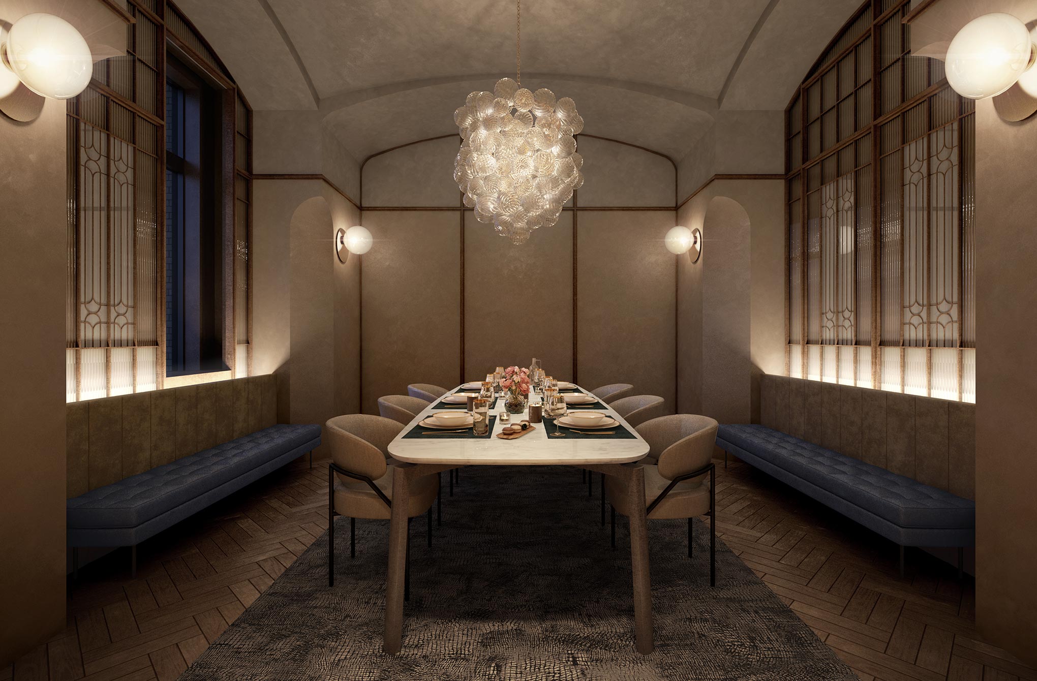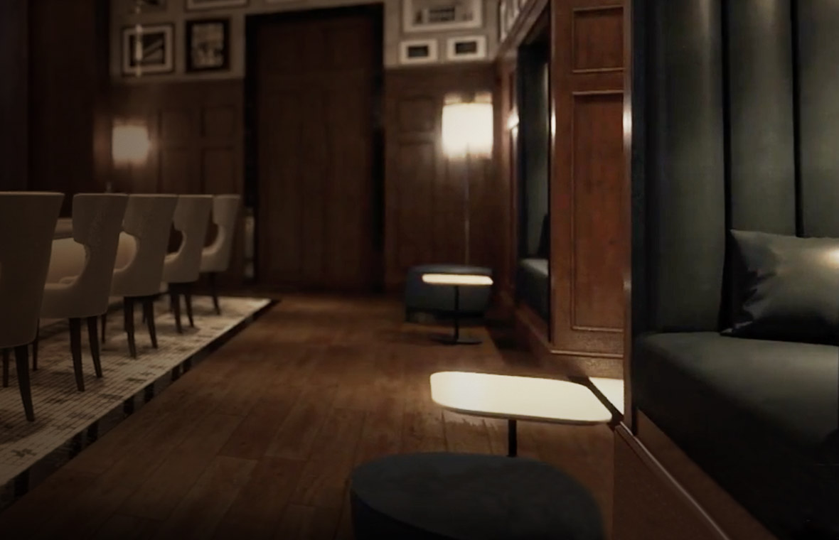 綱町三井倶楽部を望む、大人の雰囲気漂う上質な空間。